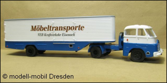 CSEPEL D-705N Möbelsattelzug Ungarn Dekor: "MÖBELTRANSPORTE VEB Kraftverkehr Eisenach" RA-Nr.301410 | ![]() |