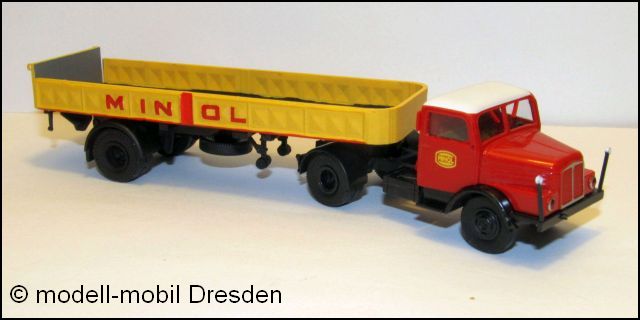 MMD-Nr.31 IFA S4-1S Sattelzugmaschine mit Sattelauflieger SA 8000 und Ladebordwand LB 1200 "VEB MINOL" Werdau DDR 1964 AUSLAUFMODELL! | ![]() |